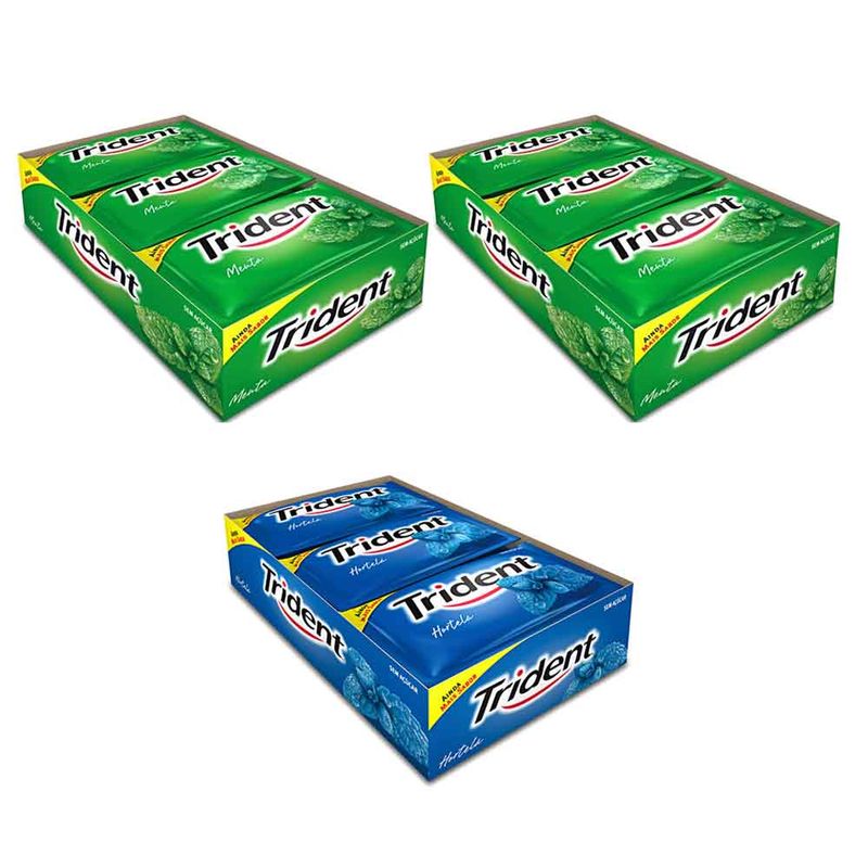 Kit com 3 Goma de Mascar Trident 2 Menta e 1 Hortelã c/21 - Adams