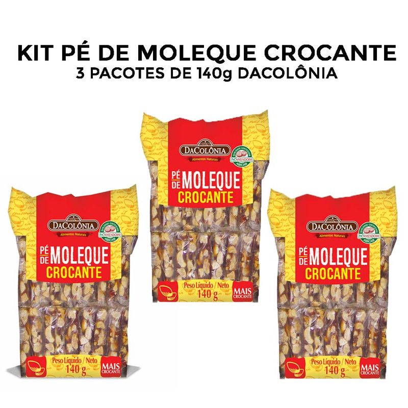 Delicioso e tradicional doce de amendoim pé de moleque crocante. Kit com 3 Pacotes.