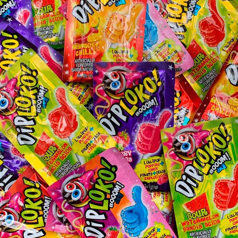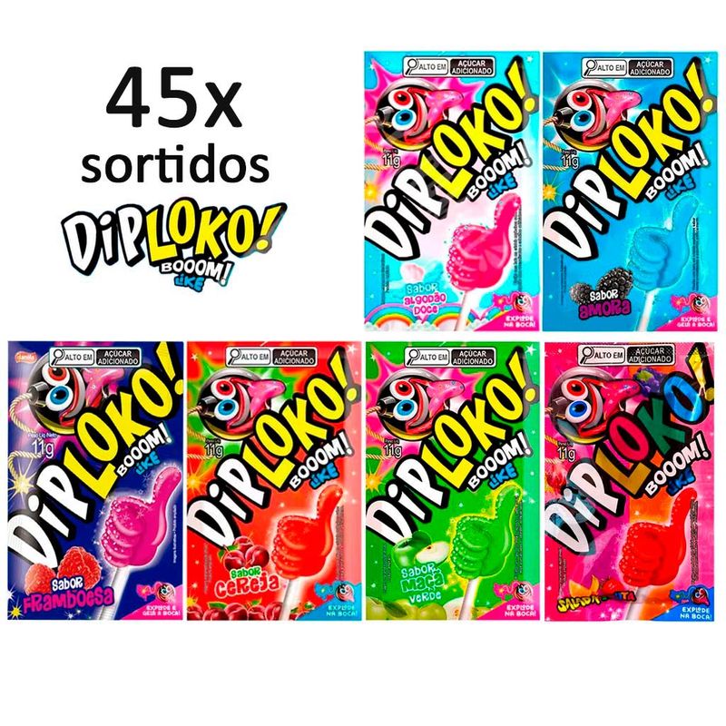 Kit com 45 pacotes de pirulto que explode na boca tipo dipnlik, vem um pozinho explosivo pra você mergulhar o pirulto!