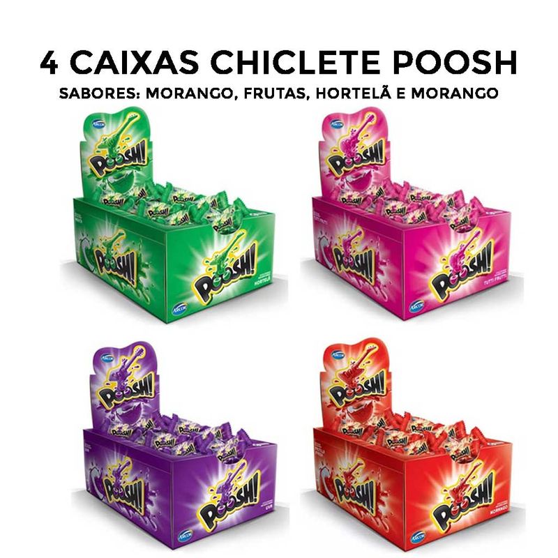 Kit com 4cx Chiclete Poosh 1 Morango, 1 Fruta, 1 Hortelã e 1 Uva c/40 - Arcor