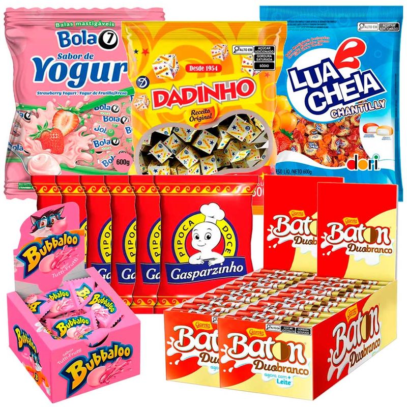 Kit econômico ideal para o dia de Cosme e Damião! São 6 tipos diferentes de doces.