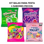 Kit com as deliciosas Balas Peccin! Reúne dois sabores clássicos em embalagens de quatro sabores de 400g das Balas: Frutibelo, Zazá, Frutiguti e Maçã Verde.