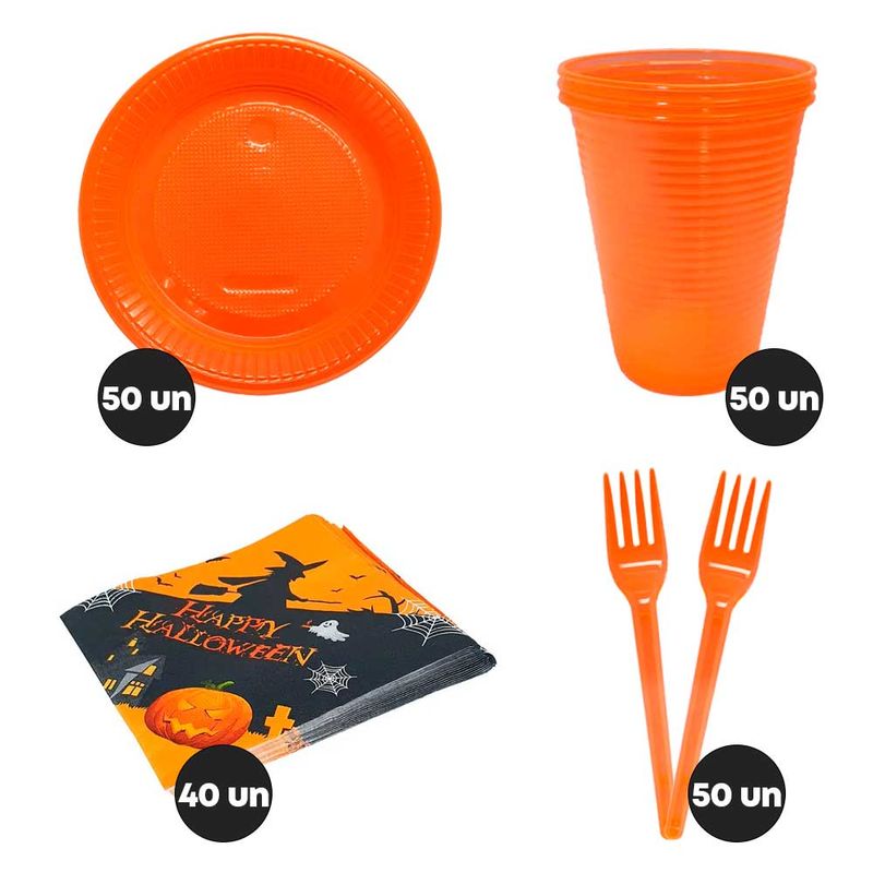 Kit de descartáveis ideal para sua festa de Halloween! Prático, econômico e lindo!