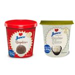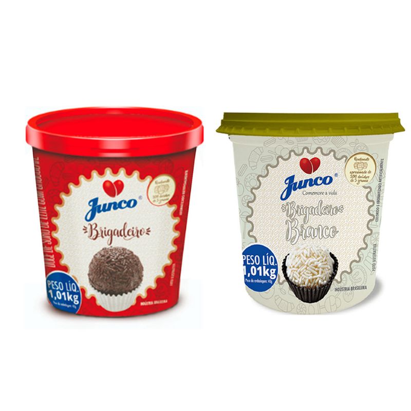 Kit contendo 2 potes (1 brigadeiro e 1 chocolate branco) de 1,01kg cada da Junco.