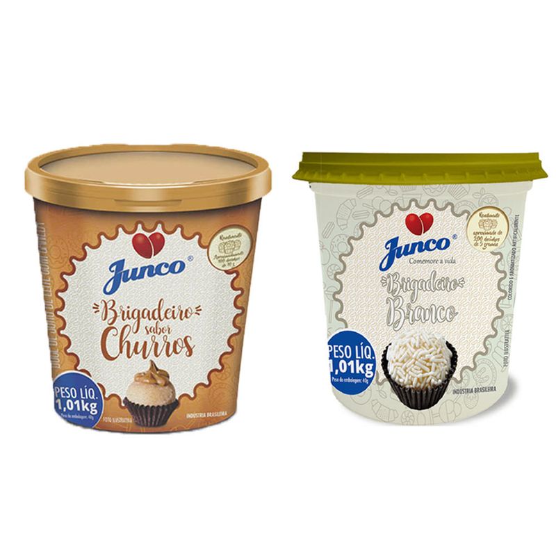 Kit contendo 2 potes (1 Churros e 1 chocolate branco) de 1,01kg cada da Junco.
