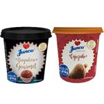 Este kit contém 2 potes de 1,010g dos seguintes sabores: Brigadeiro Gourmet e Cajuzinho. Todos os produtos JUNCO são confeccionados com matérias primas de alta qualidade, utilizando materiais adequados e tintas atóxicas no processo de impressão, observando a conformidade com todos os padrões do INMETRO. Como resultado você leva para sua casa produtos de ótima qualidade e segurança para você e sua família utilizarem à vontade.Cada pote de 1,010g tem rendimento aproximado de 200 unidades de 5g cada, que corresponde a forminha número 6. Para conservação, mantenha em local seco e arejado. Após aberto conservar no refrigerador em temperatura até 10ºC e consumir, no máximo, em 15 dias ou em temperatura ambiente até 7 dias. Ingredientes do Brigadeiro Gourmet: Soro de leite refrigerado e/ou soro de leite em pó reconstituído, leite refrigerado e/ou leite em pó integral reconstituído, açúcar, amido modificado, água, pó de cacau alcalino, chocolate em pó 50%, concentrado proteico de soro em pó, pectina (INS 440), sorbato de potássio (INS 202), aroma artificial de leite em pó e citrato de sódio (INS 331iii). Não contém glúten. Contém lactose. Alérgicos: Contém leite e derivados. Pode conter amendoim e canela. Ingredientes do Cajuzinho: Soro de leite refrigerado e/ou soro de leite em pó, açúcar, leite cru integral e ou leite em pó integral, amido modificado, farinha de amendoim, espessante pectina (INS 440), pó de cacau alcalino, conservante sorbato de potássio (INS 202), aroma artificial de leite em pó e estabilizante citrato de sódio (INS 331iii). Não contém glúten. Contém lactose. Alérgicos: Contém leite e derivados. Pode conter amendoim e canela.