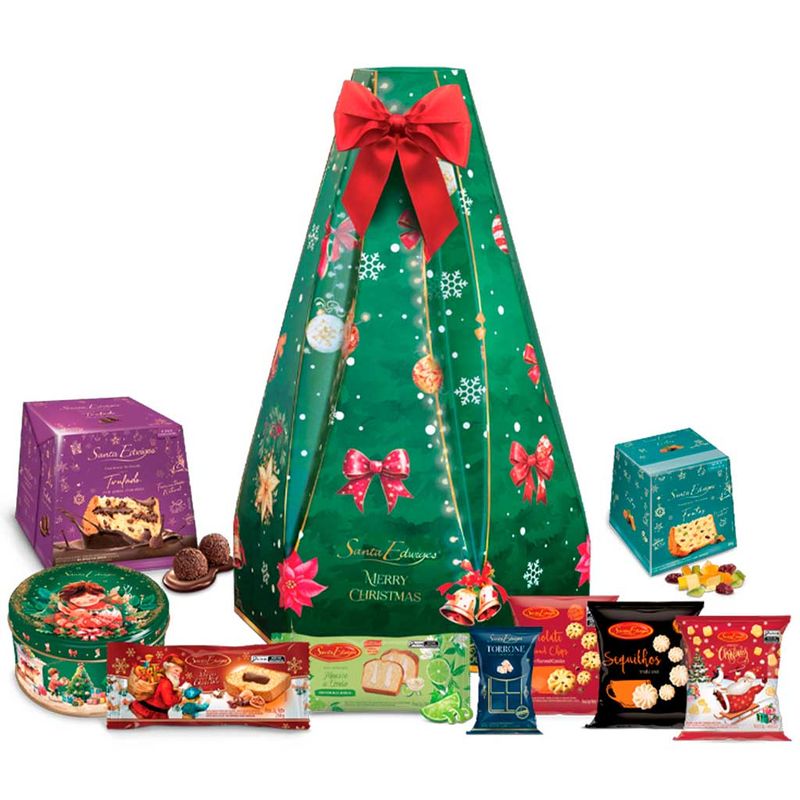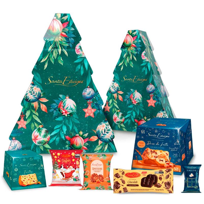 Kit Natalino Christmas Tree da Santa Edwiges com produtos típicos dessa época deliciosa. Vem numa linda embalagem em formato de árvore de Natal ideal para presentear!