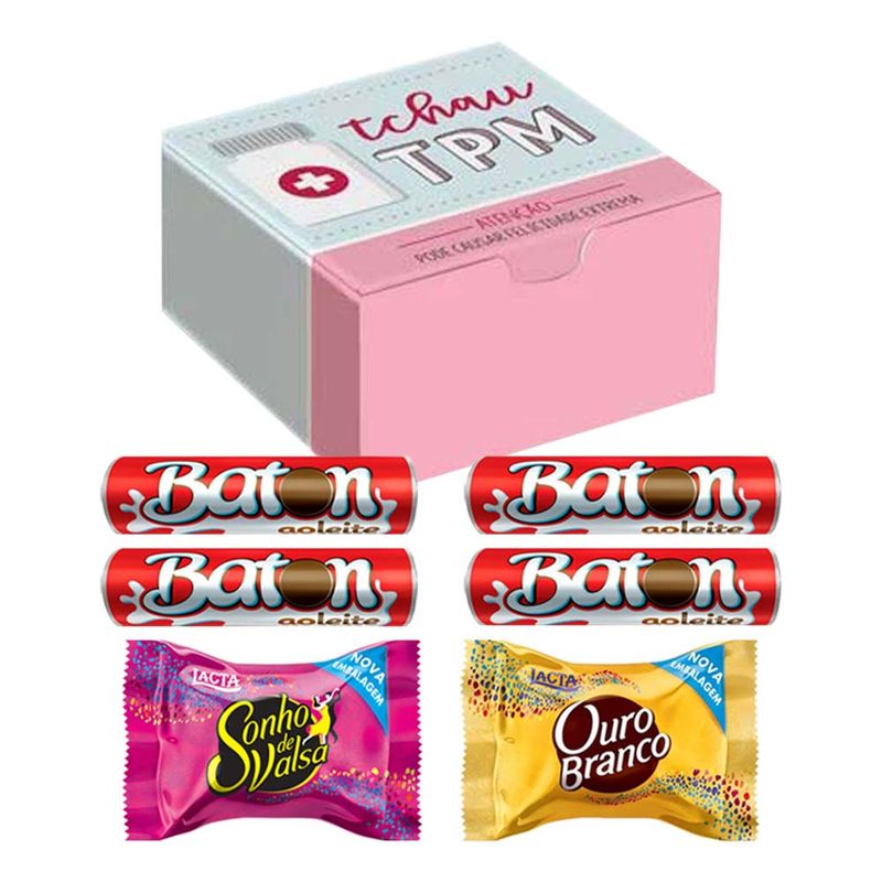 Kit composto por: 1 caixa TPM + 4 Baton Ao Leite + 1 bombom Sonho de Valsa de 20g + 1 bombom Ouro Branco de 20g
