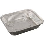 Marmitex de alumínio com tampa de cartão aluminizado. Dimensões: 221 x 175 x 49mm. Volume: 1150ml. Embalagem com 100 unidades.
