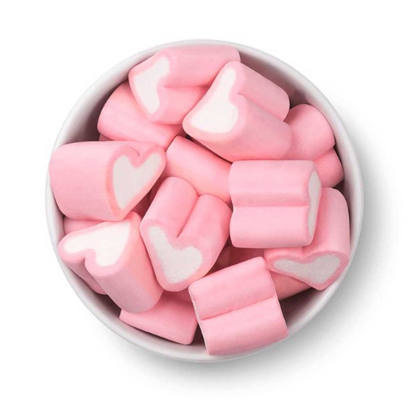 Marshmallow em formato de coração e sabor morango. Perfeitos para uso em decorações de mesas de festa, deixando qualquer decoração única e especial!
