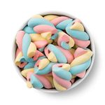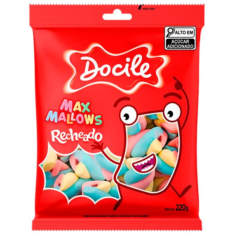Marshmallow nas cores amarelo, azul e rosa sabor baunilha com recheio de gelatina de morango. Ainda mais gostoso! Embalagem de 220g com aproximadamente 30 unidades.