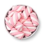 Marshmallow torção nas cores roxo e branco e sabor baunilha. Perfeito para decorações de mesas de festa, deixando qualquer decoração única e especial! Pode ser consumido tanto puro, como tostado ou assado, acompanhando bebidas quentes e fondues.