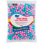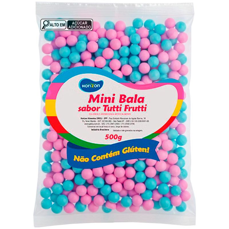 Mini balas confeitadas nas cores azul e rosa e sabor tutti frutti. Ideal para lembrancinhas e decorações de festas. Embalagem de 500g.