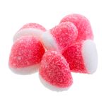 Ingredientes: açúcar, xarope de glicose, água, gelatina, umectante sorbitol, acidulantes ácido cítrico e ácido láctico (L-), gelificante pectinas, aromatizantes, corantes dióxido de titânio e vermelho allura Ac e antioxidante lactato de sódio. Não contém glúten.