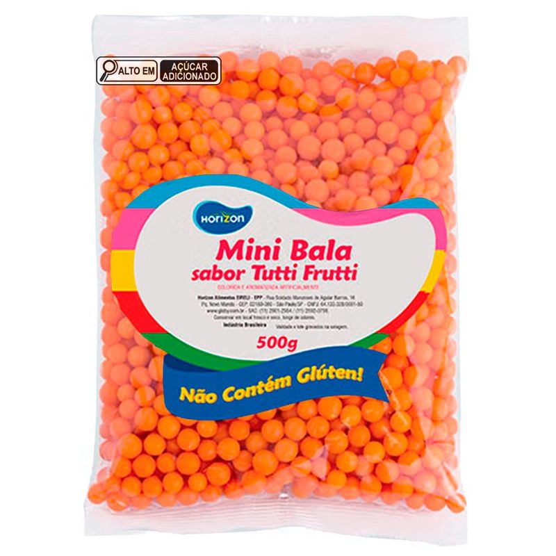 Mini balas confeitadas na cor laranja e sabor tutti frutti. Ideal para lembrancinhas e decorações de festas. Embalagem de 500g.
