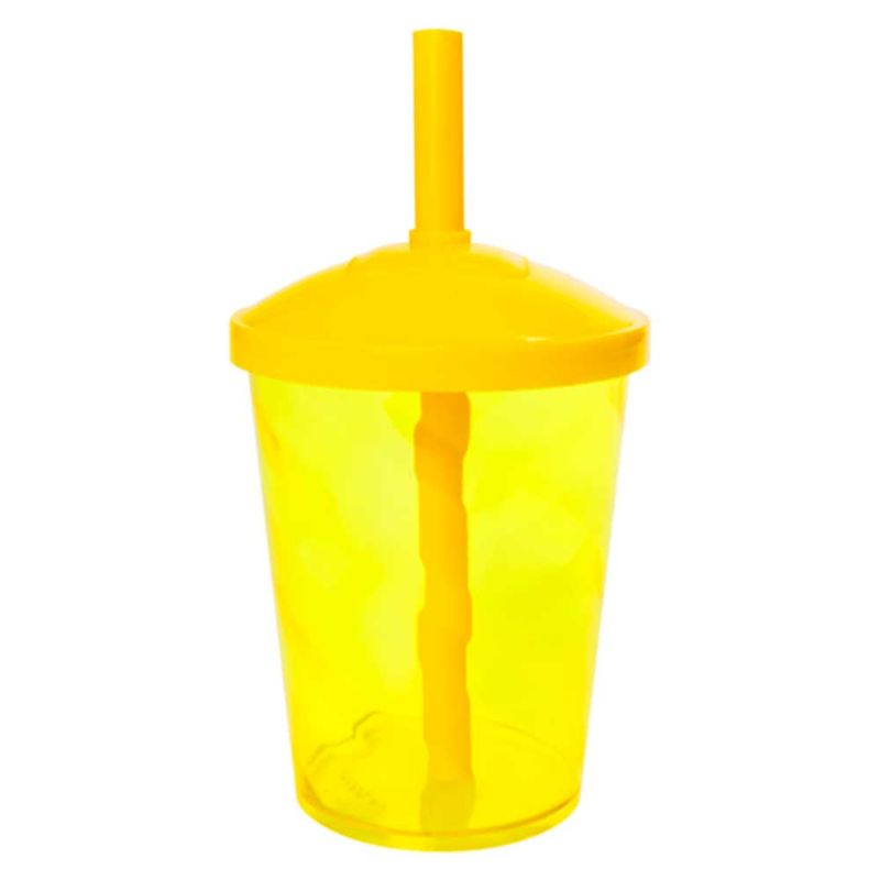 Copo shake com design em espiral e translúcido, perfeito para as crianças utilizarem no dia a dia ou em festas. Acompanha tampa e canudo.