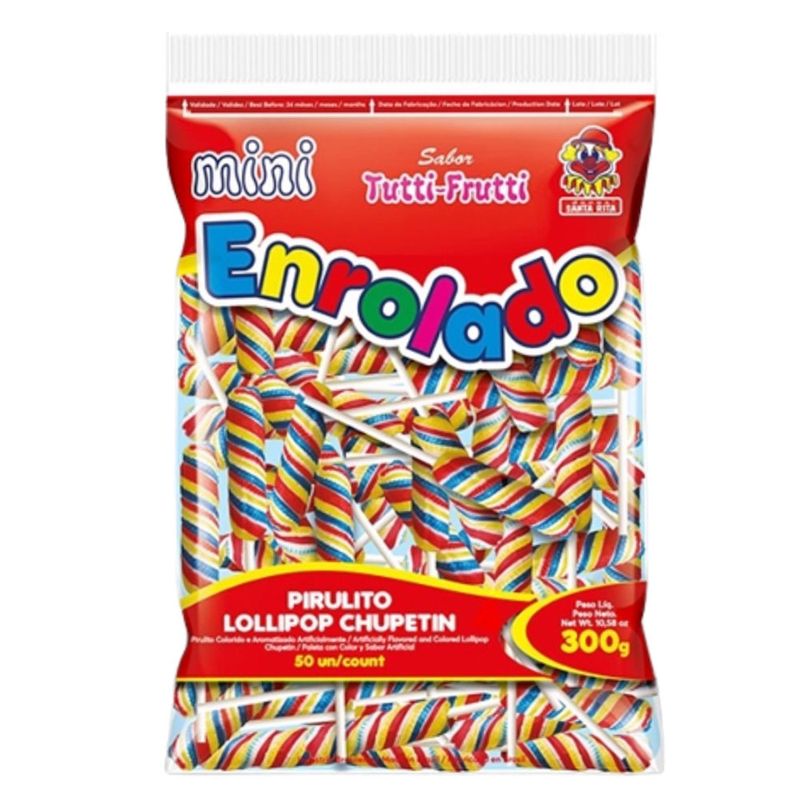 Mini Enrolado Psicodélico Colorido Sabor Tutti-Frutti. Perfeito para usar em decorações de mesas de festas, compor lembrancinhas de aniversário, tornando tudo mais colorido, com um toque único e especial! Embalagem de 300g contendo aproximadamente 50 unidades.