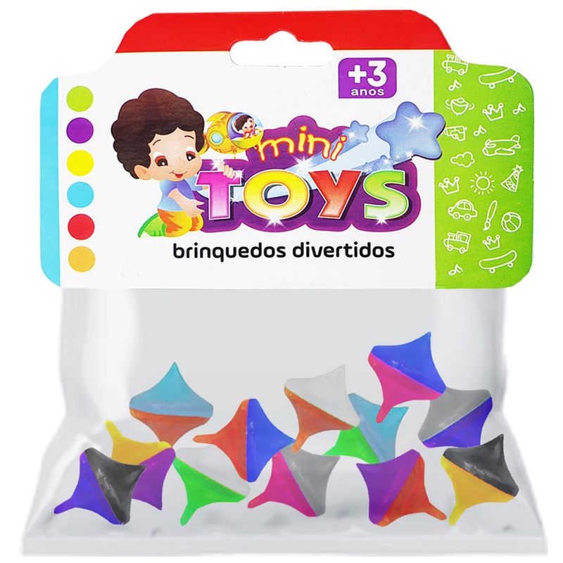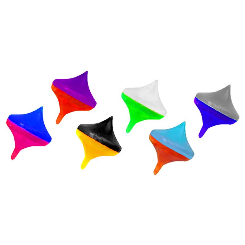 Mini Piões Coloridos duas cores, para girar com os dedos indicador e polegar. Utilize em lembrancinhas de festa.Medidas aproximadas: 3,5cm de altura x 3cm de largura.Material: Plástico.Quantidade: 20 unidades.