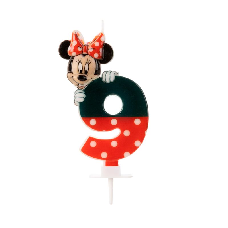 Vela da Minnie com número 9, ideal para deixar sua festa ainda mais divertida.