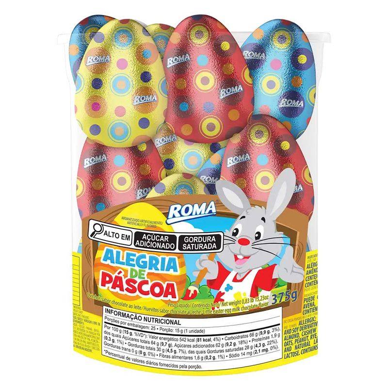Ovinhos de Páscoa sabor chocolate ao leite. Com embalagem divertida e colorida, são ideais para presentear a criançada. Contém 25 unidades de 15g cada.