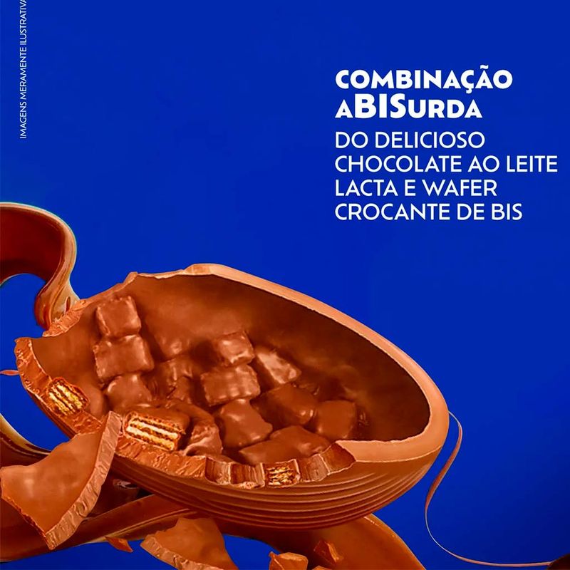 Nessa Páscoa, presenteie quem você ama com os Ovos Lacta! O famoso e delicioso chocolate Bis em formato de ovo produzido com chocolate ao leite e wafer crocante. Acompanha bis de brinde. Você vai se deliciar do primeiro ao último pedaço.