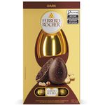 Ovo de Páscoa Ferrero Rocher Dark. Um deliciosa combinação de chocolate amargo com pedaços de avelãs que acompanha bombons ferrero rocher. Uma opção elegante e gostosa para presentear nessa data.