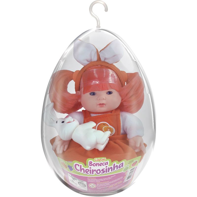 Boneca de vinil articulada da coleção boneca cheirosinha laranja.