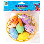 Composição: espuma para enchimento, poliester e cesta de bambu. Contém: 6 unidades de ovos. acompanha uma cenourinha Tamanho: 4x6.