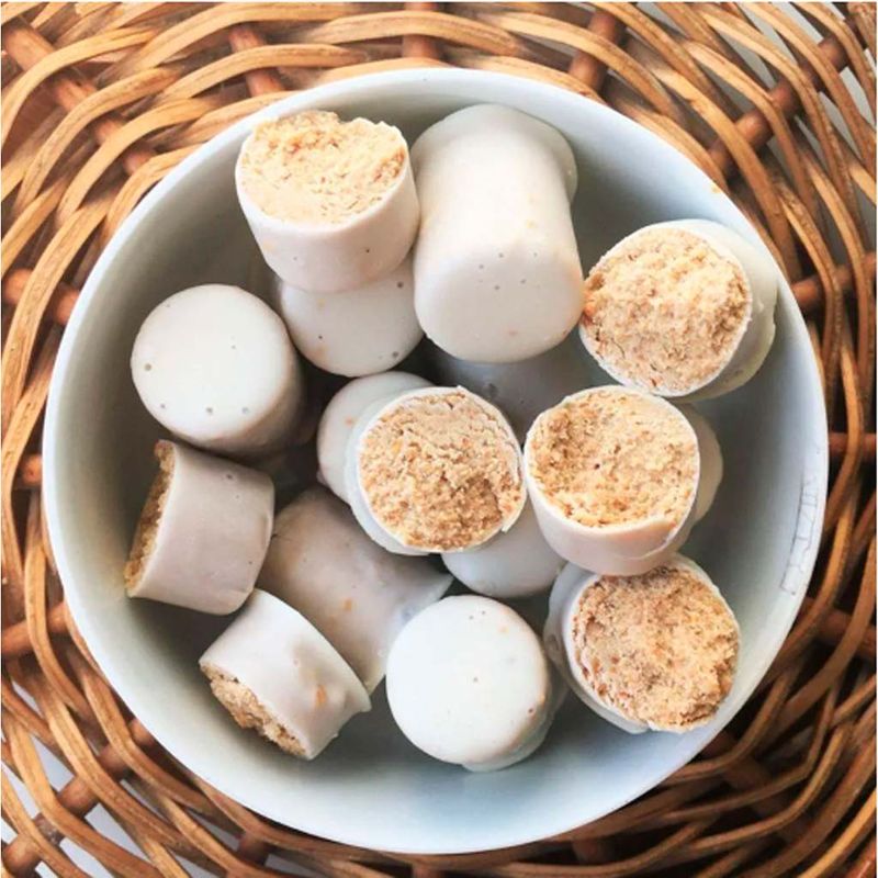 Deliciosa e tradicional paçoca coberta com uma fina camada de cobertura sabor chocolate branco. Você vai se apaixonar nessa combinação.