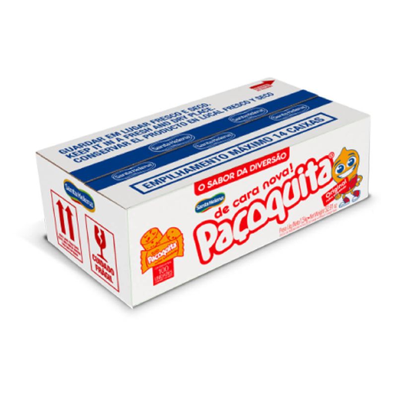 Tradicional produto brasileiro à base de amendoim, a Paçoquita é líder nacional no seu segmento e conquista consumidores e clientes a cada dia. Graças ao seu diferenciado sabor e um rigoroso controle de qualidade e de matéria-prima, é um produto apreciado por consumidores de todas as idades há mais de 25 anos. Caixa contendo 100 unidades embaladas individualmente.