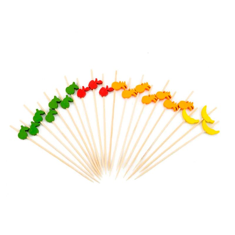 Palitos de bambu com formatos de frutas, 12 cm. Ideal para deixar sua decoração mais divertida.