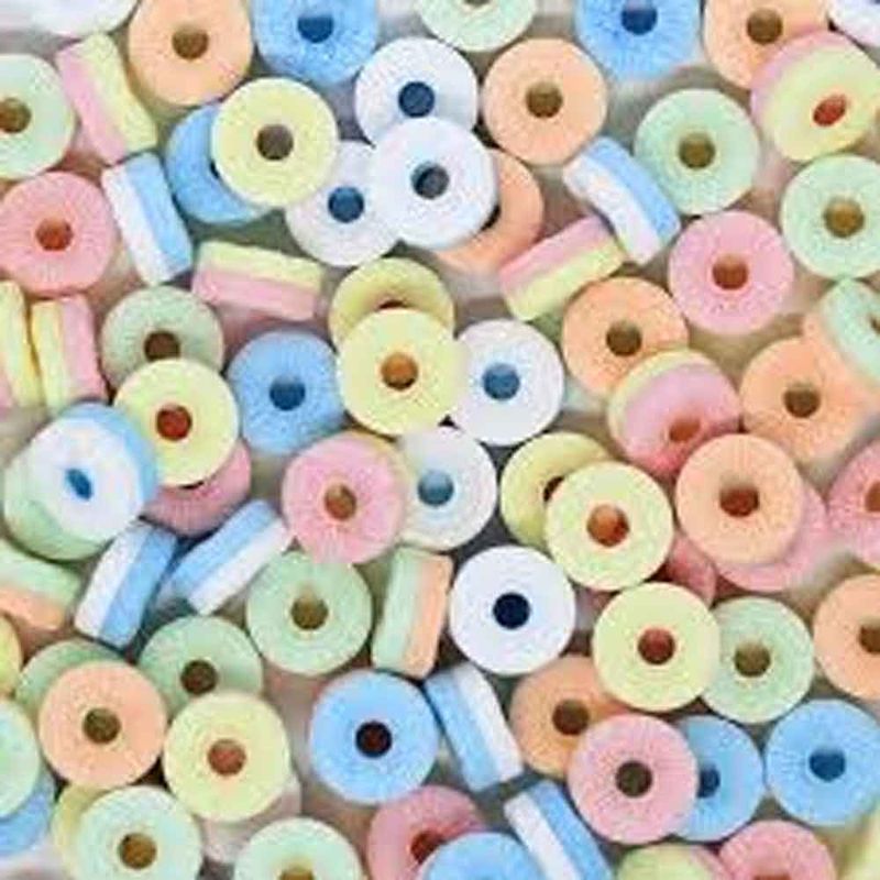 Ingredientes: açúcar, glicose, acidulante ácido cítrico, aromas artificias de morango, maçã, laranja e uva, corantes artificiais de vermelho 40, amarelo crepúsculo, amarelo tartazina, azul brilhante. NÃO CONTÉM GLÚTEN.