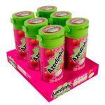 Ingredientes: edulcorantes sorbitol, aspartame, acesulfame de potássio e sucralose, acidulantes ácido cítrico e ácido tartárico, antiumectante estearato de magnésio, aromatizantes e corante artificial vermelho allura ac.