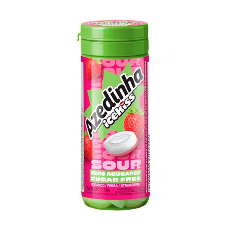 Pastilha Ice Kiss Azedinha sabor morango, sem açúcar, perfeita para quem gosta de um toque refrescante com um leve azedinho irresistível. Prática para levar na bolsa, oferece refrescância a qualquer momento do dia, ajudando a manter o hálito agradável sem abrir mão do sabor.