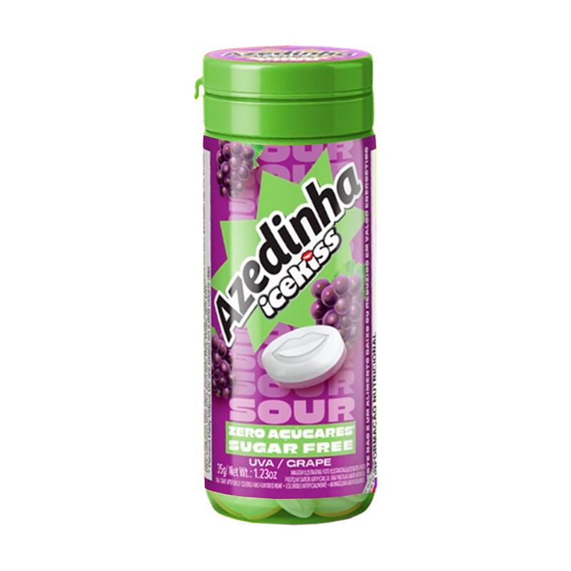 Pastilha Ice Kiss Azedinha sabor uva, sem açúcar, perfeita para quem gosta de um toque refrescante com um leve azedinho irresistível. Prática para levar na bolsa, oferece refrescância a qualquer momento do dia, ajudando a manter o hálito agradável sem abrir mão do sabor.