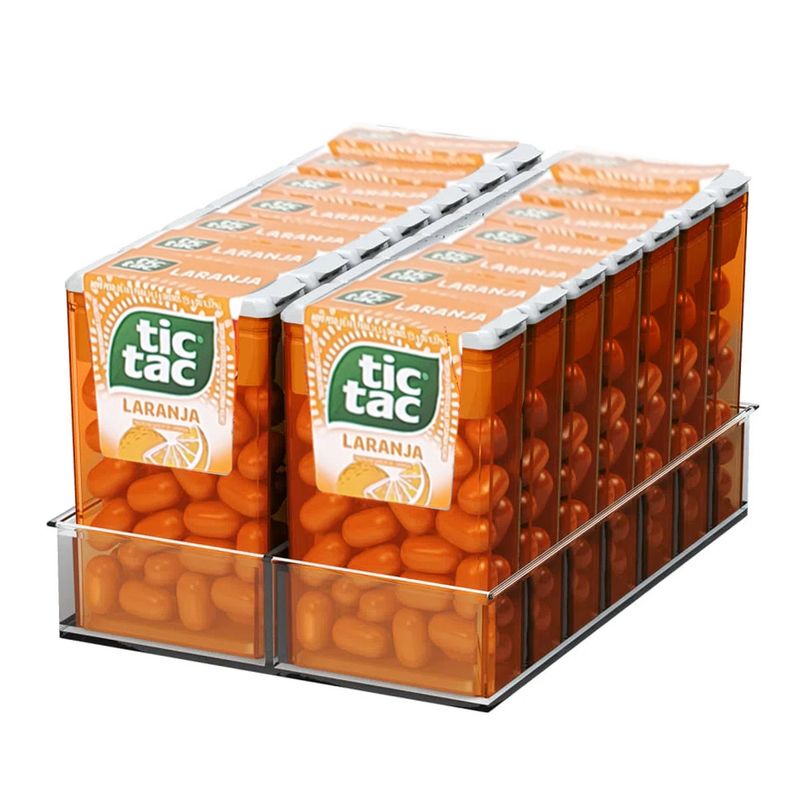 Tic Tac é uma pastilha feita com 60 camadas de ingredientes, o que faz com que o seu sabor mude progressivamente à medida em que vai se dissolvendo. É jovem, moderno, divertido além de muito refrescante! Display contendo 14 unidades de 14,5g cada. Cada unidade contém aproximadamente 30 pastilhas.