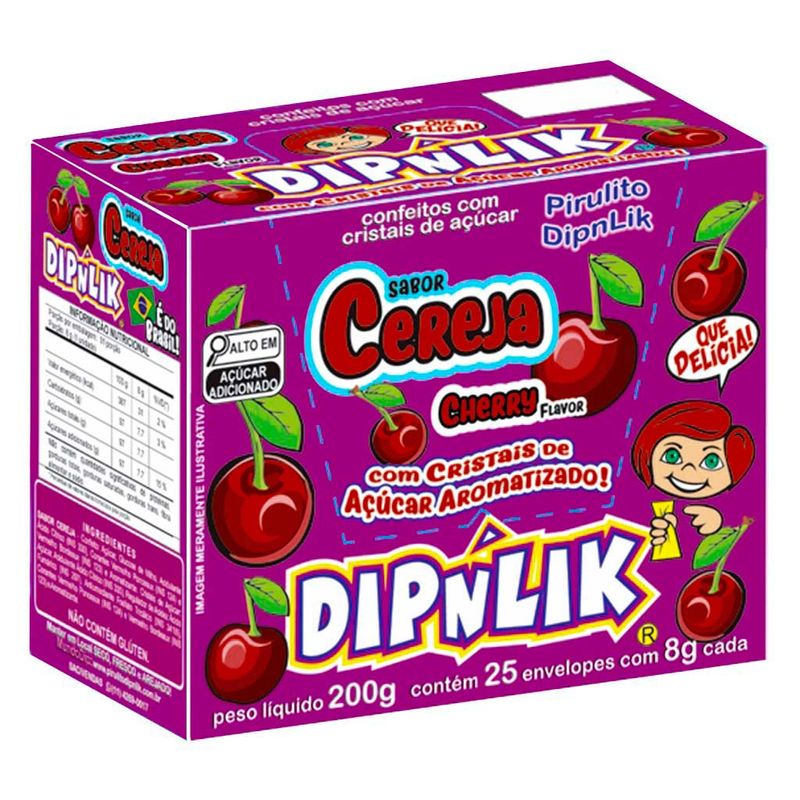 Pirulito com cristais de açúcar aromatizados no sabor cereja. Divertido e gostoso, vem com um pirulito e um sachê para mergular e saborear!