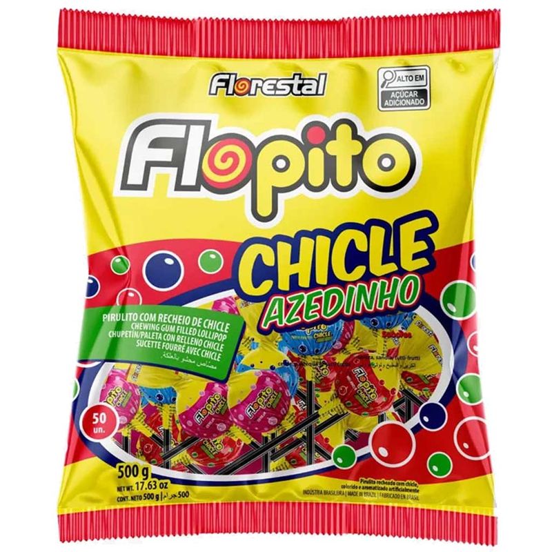 Flopito chicle azedinho em sabores deliciosos, pirulito com recheio de chicle nos sabores cereja, melancia e tutti frutti.
