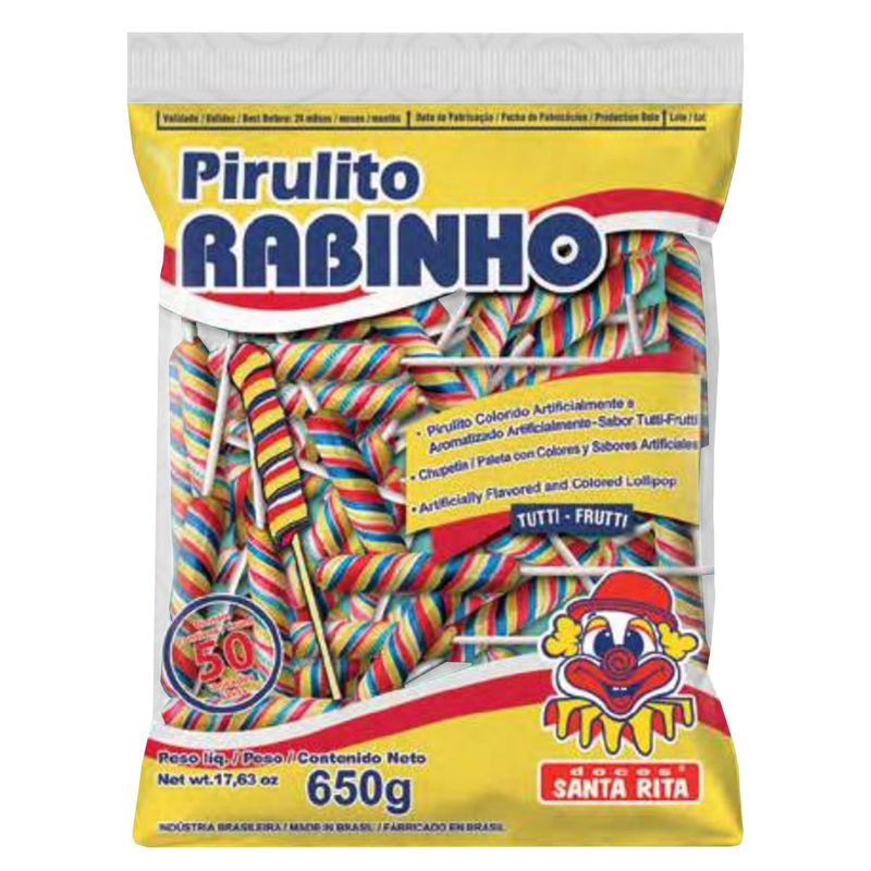 Medida aproximadas do pirulito: 8,5cm de diâmetro x 16cm de altura total (considerando o cabo). Embalagem de 650g contendo aproximadamente 50 unidades.