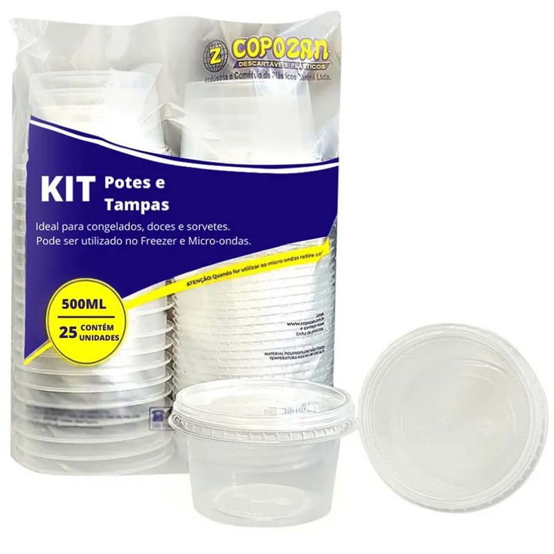 Pote descartável em polipropileno muito utilizado para venda e armazenamento de marmitas. Próprio para aquecer no microondas ou armazenar no freezer. Acompanha tampa. Capacidade: 500ml. Contém 25 unidades.