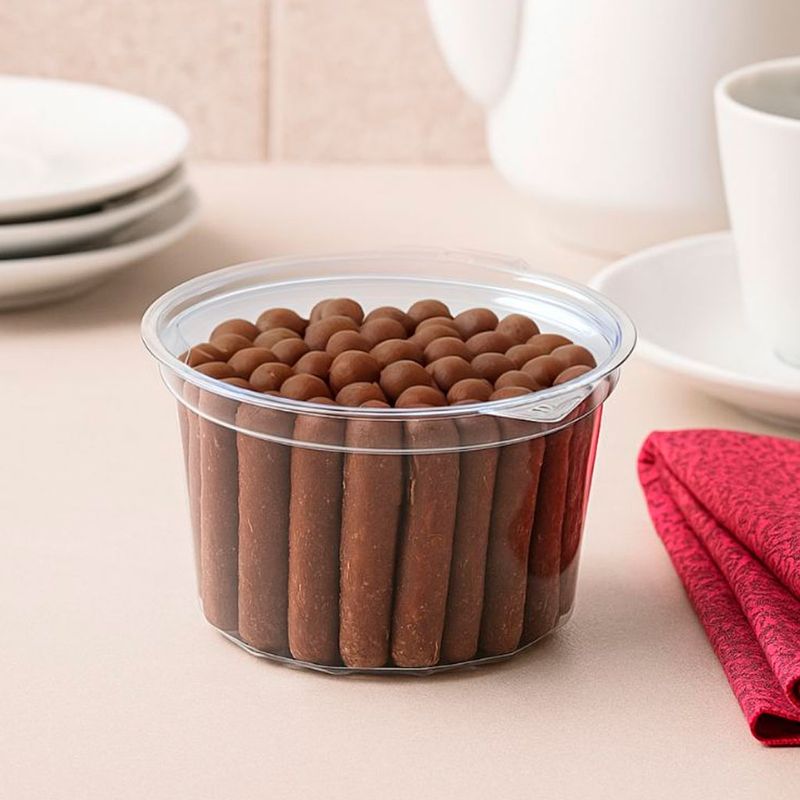 Embalagem diamantada articulada com vedação de 450ml, ideal para o dia a dia. Prática e funcional, permite armazenar, servir e descartar com rapidez e higiene.