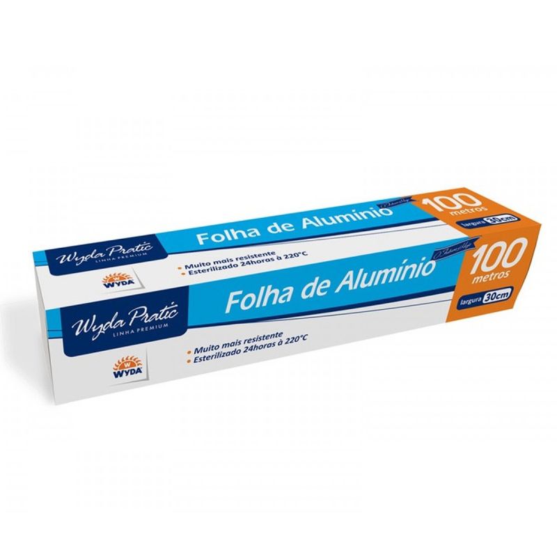 Rolo de papel alumínio de 30cm de largura com 100metros, para embrulho de alimentos.