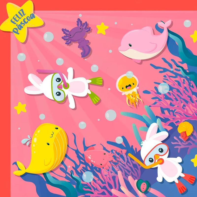 Saco Express estampado no tema fundo do mar e na cor rosa ideal para ovos de chocolate de 250g a 350g. A solução prática e charmosa para embalar ovos de chocolate nessa Páscoa.