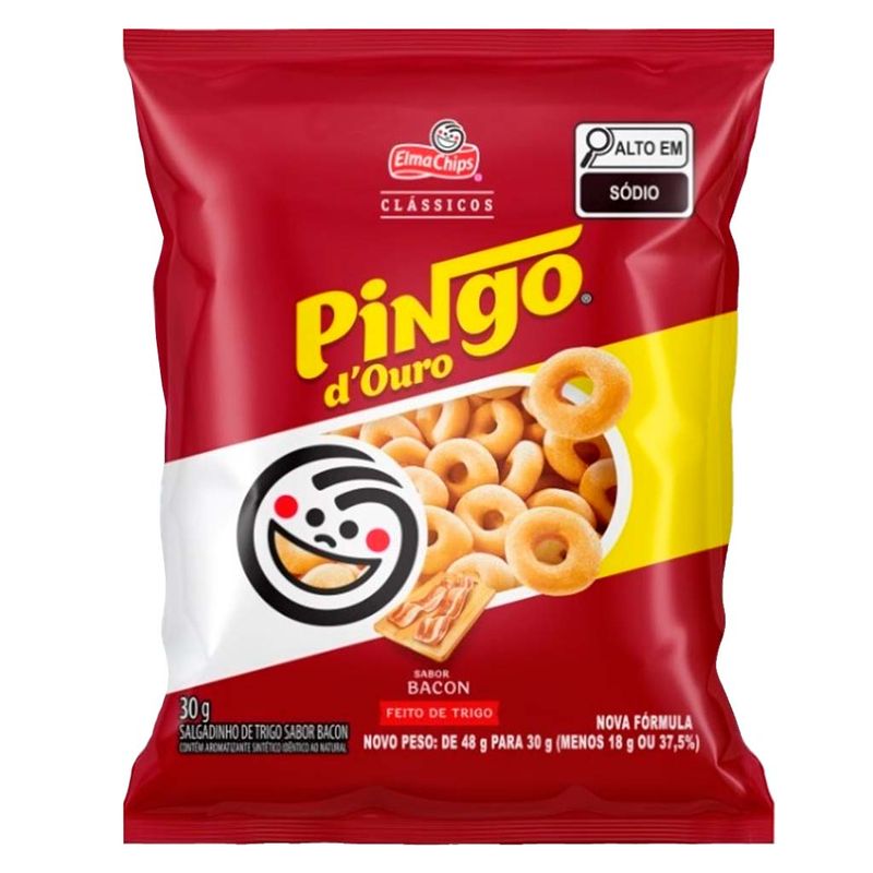 Pingo D’Ouro, o snack tradicional a base de trigo da linha Elma Chips no sabor bacon.