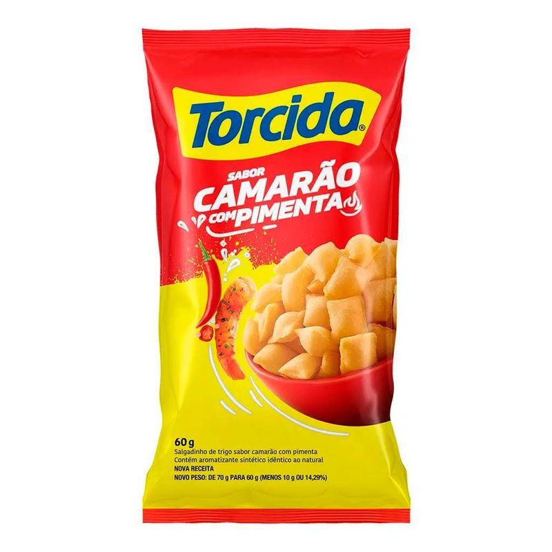 Torcida é o salgadinho da galera! No sabor camarão com pimenta, é o aperitivo perfeito para acompanhar os jogos de futebol e a roda de amigos.