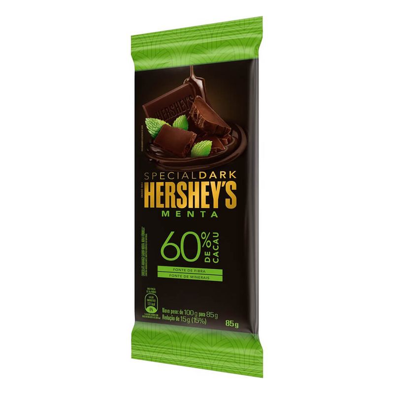 A sofisticada combinação do puro chocolate hersheys com 60% de cacau e o sabor refrescante de menta. Embalagem de 85g.