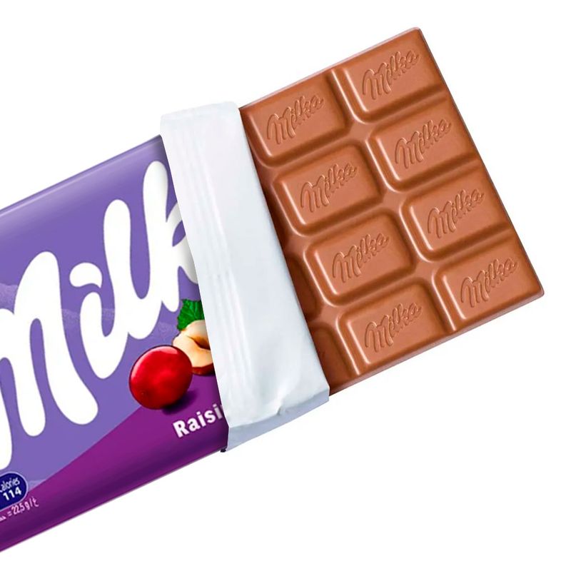 O tradicional e delicioso chocolate ao leite dos Alpes que derrete na boca com pedaços de avelã e uvas passas. Irresistível!