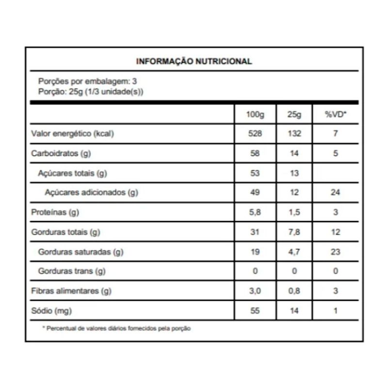 Porção de 25g (1/3 da unidade)