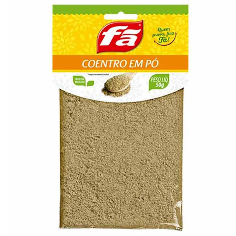 Tempero Coentro em Pó, pacotinho de 50g indicado no preparo de pickles, no tempero de carnes, aves, assados, molhos, moquecas e caldeiradas de peixes.