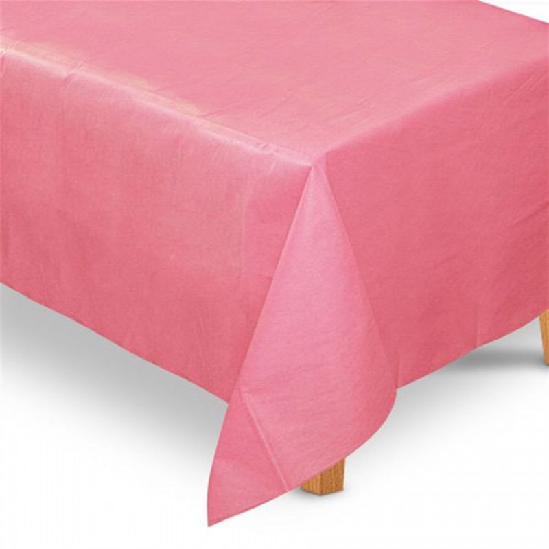 Toalha de mesa na cor rosa, ideal para decorar a mesa principal da festa. Material: TNT. Medidas: 1,4m x 2,2m. Referente a uma unidade.
